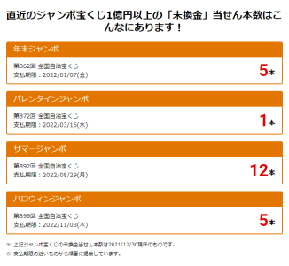 2022年1月7日(金)が期限の一昨年の年末ジャンボ5本が無事に換金されたのかどうか非常に気になるところですね。